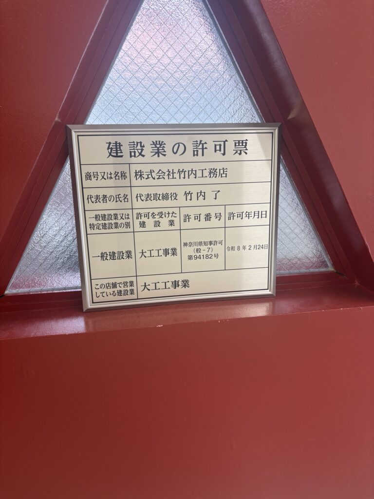 建設業の許可票を事務所に設置しました。